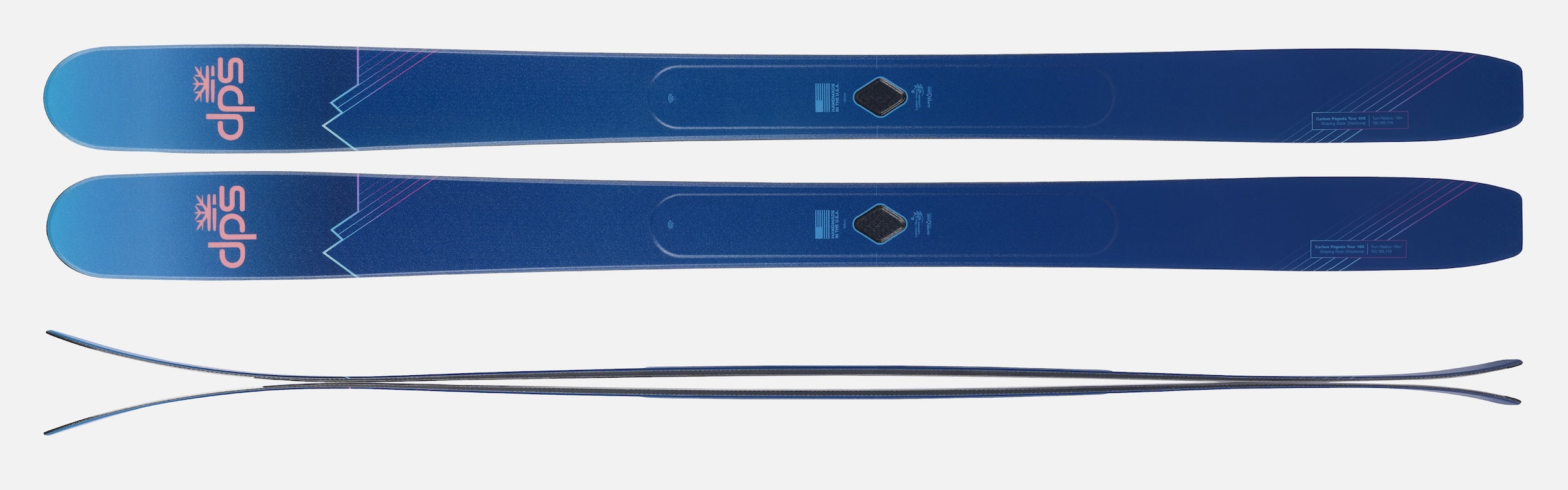 For long days in the backcountry with a variety of terrain and conditions on the descent, the Pagoda Tour CFL 105 delivers dependable performance. The 105 mm waist and subtle taper provide float and maneuverability in deep snow, and the more subtle rocker profile and 18m turn radius offer a stable platform when skiing fast or through variable conditions.